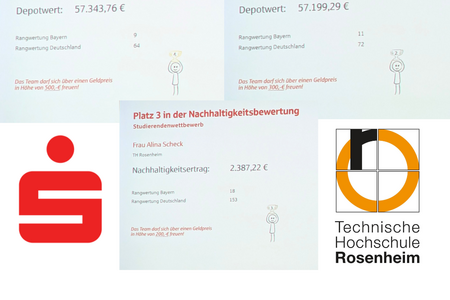 Es haben insgesamt 65 Studierende der TH Rosenheim teilgenommen und in der Klasse "Studierende" in der Kategorie "Depot gesamt" die ersten drei Plätze belegt! Die Prämien von 500 €, 300€ und 200€ für die Plätze 1-3 gingen komplett an die TH Rosenheim. Glückwunsch zu dem Clean Sweep!
