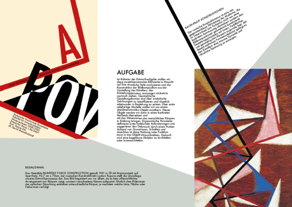 Bild und Raum sind wahrnehmungsbasierte Themen, die in ihrem symbiotischen Verhältnis als Bildraum bzw. Raumbild eine komplexe Inspirationsquelle erzeugen. In der Entwurfsübung im 1. Semester wird diese synergetische Beziehung von Bild und Raum in einem methodischen Entwurfsprozess angewandt.