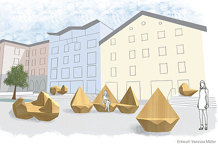Im Rahmen des Projekts »Stadtmöbel für Rosenheim«im 6. Semester haben Studierende des Bachelorstudiengangs Innenarchitektur hierfür einen innovativen Beitrag geleistet.