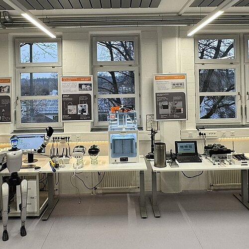 Das Innovationslabor der TH Rosenheim arbeitet kontinuierlich daran, neue Technologien zu erforschen und dieses Wissen in die Lehre zu integrieren und insbesondere mit den Unternehmen in der Region zu teilen. Daher wurden zwei „Knowledge Transfer Groups“ eingerichtet - eine für die Themen rund um Augmented Reality und Virtual Reality und eine für Artificial Intelligence-bezogene Themen.