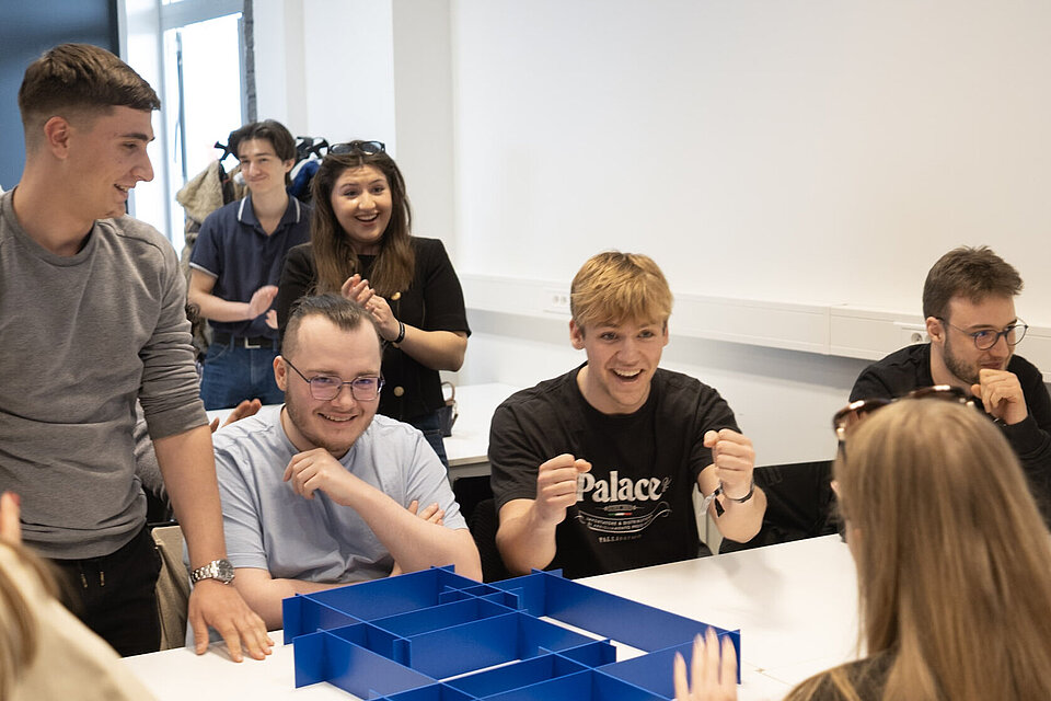 Zum anderen erlauben die Labore spannende Experimente in der angewandten Forschung – zum Beispiel: Wie beeinflussen soziale Beziehungen der Studierenden deren Arbeitseffizienz? Arbeitet man besser zusammen, wenn man sich gut kennt? Im Experiment wurden die Bearbeitungszeiten an den Arbeitsplatzrechnern automatisch erhoben und mit den gegenseitigen Beziehungsstärken der Studierenden verglichen.