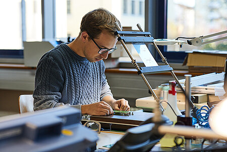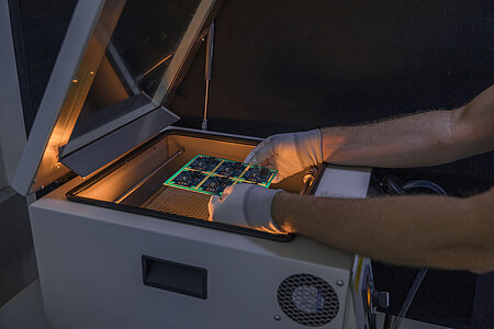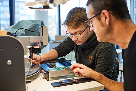 Im Labor können Studierende den gesamten Entwicklungsprozess von elektronische Baugruppen praktisch erleben – vom Design bis zur Inbetriebnahme. Das Labor ist projektorientiert ausgerichtet und steht den Studierenden frei zur Verfügung, sodass sie ihre eigenen Ideen praxisnah umsetzen können. Zur Ausstattung gehören Anlagen zur Lötpastenauftragung, automatische und halbautomatische Bestückungssysteme sowie verschiedene Lötöfen. Damit ist es möglich, alle gängigen Bauelemente zu verarbeiten, insbesondere auch solche mit untenliegendem Ball Grid Array (BGA). Ergänzt wird die Infrastruktur durch moderne Messplätze zur Prüfung und Inbetriebnahme der Baugruppen.