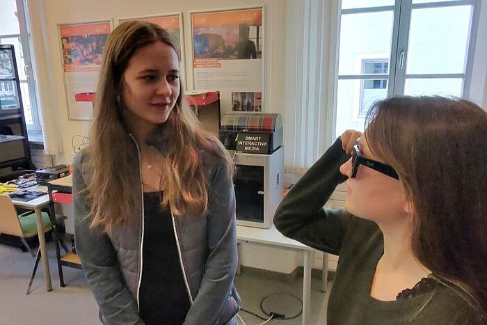 Spaß hatten sie auch in einer Hands-on-Lab-Session, wo sie von VR- und KI-Brillen, über Lasercutter, 3D-Scanner und -Drucker alles engagiert ausprobieren konnten: ein kleiner Einblick in den im Oktober 2026 startenden Bachelorstudiengang Smart Interactive Media, der physische Erfahrungen mit und das Gestalten von neuen Technologien im Fokus hat.