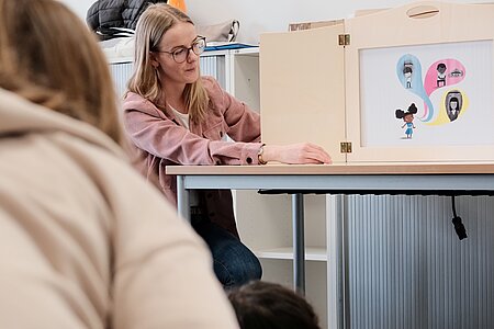 Kamishibai Erzähltheater: Mit dem japanischen Bildertheater tauchten die Kinder in emotionale Geschichten ein. Durch die visuelle Begleitung wurde analysiert, wie Gefühle entstehen und wie die Helden der Geschichten mit Wut oder Trauer umgehen.