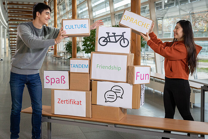 Das Sprachtandem besteht aus zwei Personen mit unterschiedlichen Muttersprachen z.B. Deutsch-Englisch, Spanisch-Deutsch, Deutsch-Hindi, etc. und bietet die Möglichkeit, in direkter Kommunikation mit Muttersprachlerinnen und Muttersprachlern Sprachpraxis und kulturelle Einblicke zu sammeln.
