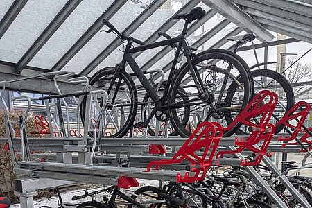 Please do not park bicycles with baskets, child seats, etc. on the luggage rack in the upper parking spaces. Thank you!