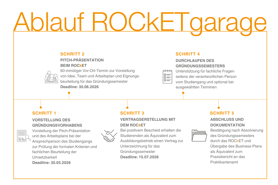 SCHRITTE von der Bewerbung bis zum Abschluss der ROCkETgarage