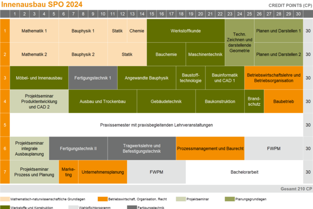 Nach einer ingenieurwissenschaftlichen und gestalterischen Grundausbildung erlernen die Studierenden des Studiengangs Innenausbau eine Kombination aus konstruktiven, fertigungstechnischen und betriebswirtschaftlichen Fähigkeiten.