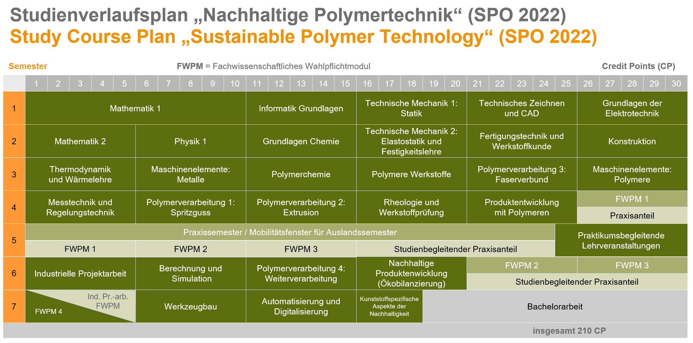 Für alle, die schon mitten im Studium „Nachhaltige Polymertechnik“ sind und ihr Studium nach der Studien- und Prüfungsordnung von 2022 begonnen haben, gibt es hier wichtige Informationen.