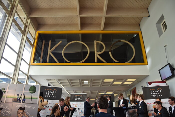 Bereits bei der Eröffnungsrede stellte Hochschulpräsident Prof. Heinrich Köster die Besonderheit und Wichtigkeit der IKORO (Industrie- und Kontaktmesse Rosenheim) heraus, die er als „eine der wichtigsten, wenn nicht sogar die wichtigste Veranstaltung an der Hochschule“ bezeichnete. Das diesjährige Motto „Create your future“ bezog sich dabei nicht nur auf den beruflichen Kontext. Auch das Thema Nachhaltigkeit in all seinen Aspekten wollte das IKORO-Team den Teilnehmern ans Herz legen. Die Hochschulmesse wird traditionell von einem jährlich wechselnden, fakultätsübergreifenden Team organisiert, neben einem großen Lob der verantwortlichen Dozentin, Prof. Dr. Janett Höllmüller, für das gesamte Team, gab diese auch Einblicke in die Hintergründe der Messe und darüber, was das Team bereits im Vorfeld für das Gelingen der Veranstaltung geleistet hatte. Bereits seit 25 Jahren gibt es die IKORO – und ebenso lange dient die Messe als hervorragendes Beispiel für das, was die Hochschule Rosenheim besonders auszeichnet: Ein exzellentes Netzwerk mit der Wirtschaft – die mit knapp 200 Ausstellern vertreten war, hervorragende Rahmenbedingungen für die Lehre – die sich während der Messe in Form moderner Hörsäle und Technik sowie einer sympathischen und effizienten Verwaltung präsentieren. Eine dritte, wesentliche Besonderheit der Hochschule Rosenheim liegt in der Ausbildung von Problemlösungskompetenzen über alle Studiengänge hinweg. Diese wird in der Planung und erfolgreichen Umsetzung einer großen Messe wie der IKORO sehr gut sichtbar. Mit viel Spaß an der Sache und einem hohen Maß an Kreativität, die sich etwa in kurzweiligen und mehrstufig aufgebauten TV- und Radiospots äußerte, zeigte das Team ein hoch professionelles Prozessmanagement über viele Monate, viele Studiengänge und Kompetenzfelder hinweg. Ein 20-köpfiges Team sowie rund 100 Helfer mussten im Vorfeld und während der Messe geführt und organisiert werden. 2018 wurde zudem ein automatisiertes Rechnungstool entwickelt. Zur logistischen Leistung gehörten die Beschaffung und die Steuerung des Warenflusses zur Bereitstellung einer funktionierenden Infrastruktur für die Stände der Aussteller und die Versorgung der Gäste mit einem umfangreichen Rahmenprogramm. Themen wie die Weiterentwicklung der hausintern geplanten und realisierten Online-Anmeldeplattform – ein Kooperationsprojekt zwischen den Fakultäten BWL und Informatik – wurden von der „Firmenbetreuung“ koordiniert. Dort lag in diesem Jahr besonderes Gewicht auf den Themen Datenmanagement und Datenschutz, aufgrund der im Mai in Kraft tretenden neuen Datenschutzverordnung. Im Bereich Marketing lag der Schwerpunkt auf der systematischen Information und dem Involvieren der studentischen – sowie auch der Unternehmenszielgruppen. Hierfür nutzte das Team die relevanten Social-Media-Kanäle Facebook und Instagram und sorgte für aktuellen Webseiten-Content unter www.ikoro.de. Beispiele hierfür sind der umfangreiche digitale Messekatalog und ein Gästebuch für die Firmenvertreter auf der Messe.