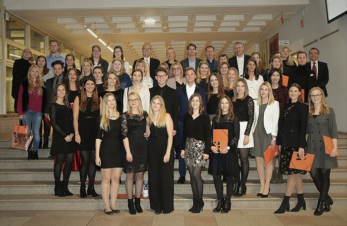 Insgesamt konnten 90 Studentinnen und Studenten ihr MGW-Studium im Laufe des Jahres 2018 erfolgreich abschließen und zur diesjährigen Absolventenfeier an die Technische Hochschule eingeladen werden. Zu Beginn der Veranstaltung begrüßten Dekanin Prof. Dr. Sabine Ittlinger, Prodekan Prof. Dr. Franz Benstetter und Studiengangsleiter Prof. Dr. Robert Ott alle anwesenden Gäste. Besonders erfreulich war, dass sich Herr Hubertus Räde (stellv. Vorstandsvorsitzender der AOK Bayern) und Dr. med. Ulrich Mauerer (Vorstandsvorsitzender der Medical Park AG) die Zeit genommen hatten, ebenfalls an der Feierlichkeit teilzunehmen und das Wort an die Absolventinnen, Absolventen und deren Familien zu richten. Auch diese, vertreten durch Semestersprecher Alexander Sieberath und Studierendenvertreter Dominik Hellinger, hatten wieder einen kleinen Beitrag vorbereitet. Nach der Ehrung der „TOP 5“ überreichten Studiengangsleiter Ott und das MGW-Professorenteam allen anwesenden Absolventinnen und Absolventen eine Urkunde und ein kleines Geschenk, bevor es zum geselligen Ausklang mit Häppchen und Getränken im Foyer der Hochschule überging. Musikalisch wurde die Feier durch das Kammerorchester der TH Rosenheim, unter der Leitung von Evi Mittermaier, umrahmt.