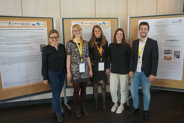 Teilnehmende und Vortragende waren Forschende aus zahlreichen Ländern, so z. B. Frankreich, Australien, Brasilien und Amerika. Im Mittelpunkt standen Vorträge zu den Themen Wahrnehmungsstörungen der Vertikalität bei neurologischen Erkrankungen, deren Ursachen, Diagnostik und Behandlung. Im Rahmen dessen hatten drei Bachelorand*innen des Studiengangs Physiotherapie die Möglichkeit, die Ergebnisse ihrer Bachelorarbeiten während einer Session mit Posterpräsentationen vorzustellen. Johanna Weghorn, Judith Jahnke und Tobias Döringer hatten sich in ihren Abschlussarbeiten mit Diagnostik- und Behandlungsansätzen bei Latero- und Retropulsion auseinandergesetzt, z. B. mit Virtual-Reality-basierter Therapie zur Verbesserung der posturalen Kontrolle (Haltung) oder des Einflusses von Veränderungen der subjektiven Vertikale auf die Haltung und das Sturzrisiko bei neurologischen Patienten. Die Forschungsarbeiten entstanden in Zusammenarbeit mit der Schön Klinik Bad Aibling Harthausen unter der Betreuung von Dr. Jeannine Bergmann und Prof. Dr. Petra Bauer (TH Rosenheim).