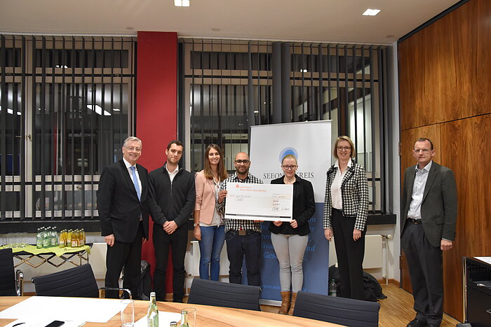Bild: Siegerteam „Miro“ (v.l.n.r.): Alfons Maierthaler, Fabian Kuchler, Katharina Markon, Ali Piriyaie, Franziska Hildegard Schneider, Bettina Oestreich, Prof. Dr. Bernhard Holaubek