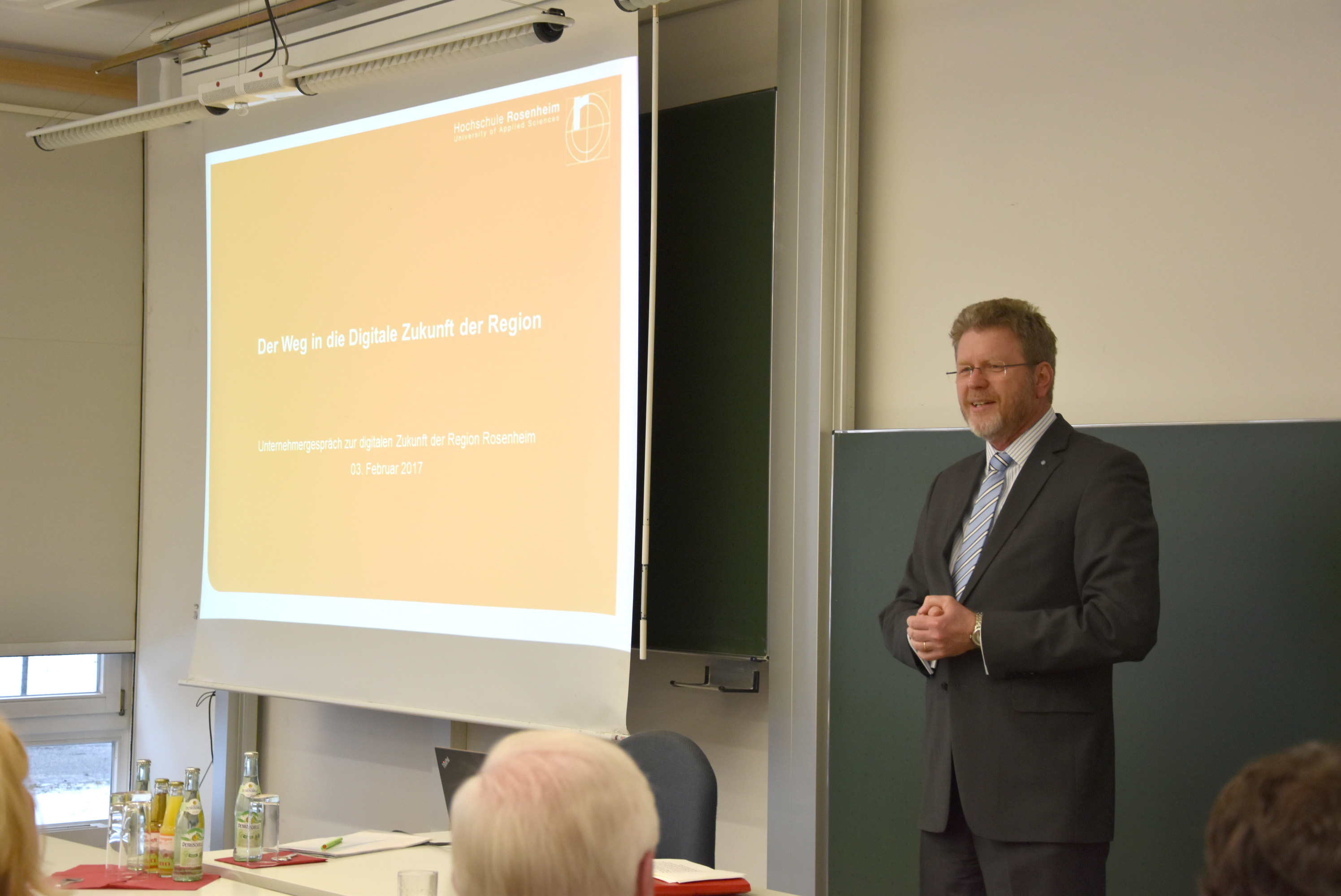 „Dass unsere Absolventen Projekte mit komplexen Fragestellungen aus der Praxis eigenständig bearbeiten und lösen können, haben sie bereits bei der Erstellung Ihrer Abschlussarbeiten bewiesen“, so Professor Heinrich Köster, Präsident der Hochschule Rosenheim und selbst Absolvent des Rosenheimer Holztechnik-Studiums, in seinem Grußwort an die Studierenden.