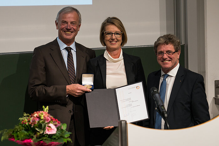 Zum Abschluss der Veranstaltung wurde Bettina Oestreich, Geschäftsführerin des Seeoner Kreis e.V., durch Franz Winterer (Vorstandsvorsitzender Seeoner Kreis e.V.) die Hugo-Laue Medaille verliehen als Anerkennung ihrer Dienste für die Hochschule Rosenheim. Günther Pfaffeneder, ehemaliger Hauptgeschäftsführer der RoMed Kliniken, wurde von Prof. Sabine Ittlinger die Würde eines Ehrensenators verliehen. Im Anschluss waren alle Teilnehmer zum feierlichen Festabend eingeladen. Der Dies academicus der Hochschule Rosenheim findet jährlich mit Unterstützung durch den Seeoner Kreis e.V. statt.