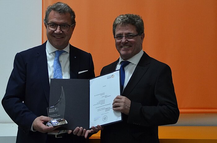 Bild (Klaus Stöttner, MdL (l) und Prof. Heinrich Köster, Präsident der TH Rosenheim (r)