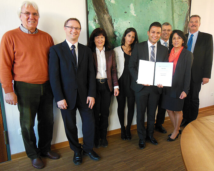 In einer kleinen Feierstunde, zu der auch die Familie des Preisträgers anreiste, überreichten die Hochschulleitung, Vertreter des International Office und der Fakultät für Betriebswirtschaft den Förderpreis des DAAD.