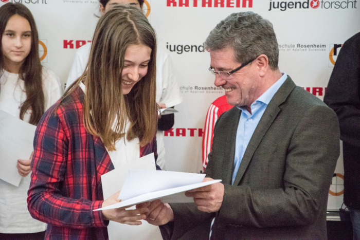 Unter dem Motto „Zukunft – ich gestalte sie“ ging „Jugend forscht“ bereits in die 52. Runde. Dank der Initiative der Kathrein-Gruppe und der Hochschule Rosenheim fand das Projekt zum ersten Mal mit einem Regionalwettbewerb in Rosenheim statt. Über 60 Projekte in den sieben Kategorien Arbeitswelt, Biologie, Chemie, Geo- und Raumwissenschaften, Mathematik/IT, Physik und Technik wurden von den Rosenheimer Schülerinnern und Schülern vorgestellt. Eine Jury beurteilte die Leistung der Teilnehmer und vergab Preise und Sonderpreise für herausragende Leistungen. Sieben Teilnehmer qualifizierten sich mit einem ersten Preis für die Teilnahme am Landeswettbewerb Bayern. Mit einem 1. Preis in der Kategorie "Schüler experimentieren" wurden folgende Teilnehmer ausgezeichnet: Sonja Drick vom Maria-Ward-Gymnasium Altötting (Chemie), Leo Heller vom König-Karlmann-Gymnasium Altötting (Mathematik/IT), Louis Wolf und Lucas Wolfgruber vom Chiemgau-Gymnasium Traunstein (Physik) sowie Louis Einsiedler vom Ludwig-Thoma-Gymnasium Prien (Technik). Den 1. Preis in der Kategorie "Jugend forscht" erhielten Constantin Geier vom Ignaz-Günther-Gymnasium Rosenheim (Mathematik/IT), Hannes Pravida vom Ignaz-Günther-Gymnasium Rosenheim (Physik) sowie Ralf Gleich und Emre Gülcino von der FOS/BOS Altötting (Technik).