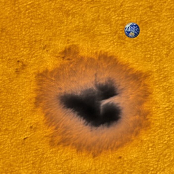Sonnenflecken sind Gebiete auf der Sonne, an denen die Temperatur „nur“ ca. 4500°C beträgt. Die übrigen, hellen Gebiete sind im Vergleich dazu rund 1.500°C heißer. In den kühleren Gebieten stören Magnetfelder das Aufsteigen der heißen Materie. Das menschliche Auge nimmt diese Temperaturunterschiede als hell und dunkel war. Weitere Infos zum Sonnenfleck finden Sie im aktuellen Astronewsletter.