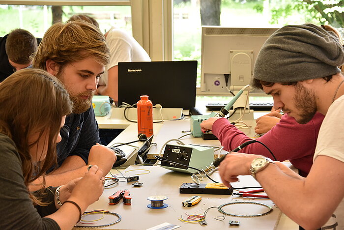 „Tipps und Tricks für den Studentenkörper“ gibt es im Workshop des Studiengangs Physiotherapie am 17. November. Gebastelt wird im Dezember. Der Studiengang Elektro- und Informationstechnik bietet am 16. Dezember den Workshop „Eigenes Netzteil bauen – Ätzen, Bestücken und Löten“ an.
