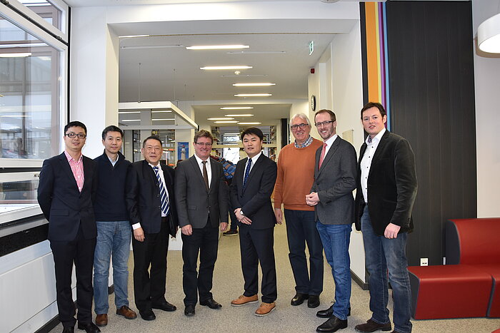 Eine Delegation der HOMAG Group sowie Vertreter der chinesischen Wirtschaft überzeugten sich bei einem Besuch selbst von der Expertise der Hochschule Rosenheim, die als innovatives Vorbild dienen soll. Zusammen mit dem Präsidenten der Hochschule, Prof. Heinrich Köster sowie dem Prodekan der Fakultät für Holztechnik und Bau, Prof. Thorsten Ober, Prof. Werner Braatz und Herrn Dipl.-Wirtschaftsingenieur (FH) Simon Flatscher wurden bereits erste Konzepte und Strategien entwickelt und unterzeichnet.