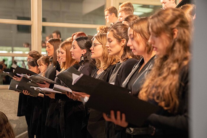 Im voll besetzten Foyer der Technischen Hochschule fand das diesjährige Winterkonzert in voller studentischer Besetzung statt. Ein winterlich weihnachtliches Programm mit modernen und klassischen Stücken begeisterte die Zuhörer. Chor und Kammerorchester unter der Leitung von Evi Mittermeier, Orchester und Blasorchester unter der Leitung von Marinus Brückmann zeigten was sie im Semester geprobt hatten. Der Präsident der Technischen Hochschule Heinz Köster und Karl-Heinz Lehner, Initiator und Kooperationspartner des Projekts „Musik an der Hochschule“ von der katholischen Hochschulgemeinde, waren sich einig: hohe musikalische Qualität, engagierte Studierende und eine professionelle Leitung haben der Technischen Hochschule nun schon seit vier Jahren eine besondere Note verliehen.