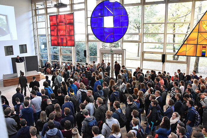 Die Erstsemester nahmen Präsident Köster, Vizepräsident Prof. Dr. Eckhard Lachmann sowie Oberbürgermeisterin Gabriele Bauer bereits am 30. September herzlich in Empfang. Das Studienstartprogramm half den Neuankömmlingen bei der Orientierung: Studentische Tutoren höherer Semester, die Studienstartkapitäne, gaben den Erstsemestern Tipps rund um Studium und Studienorganisation und luden zum gegenseitigen Kennenlernen ein. Informationen zu wichtigen Anlaufstellen, eine Mensa-Einführung und Campusführungen sollen den Studierenden helfen, sich schnell an der Hochschule zurechtzufinden.