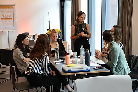 Ein 2-tägiger Workshop im Sommersemester, ausgerichtet von einem Professorenteam der Fakultät GSW aus Versorgungsforschung und -management und der Gesundheitswirtschaft. Zusammen mit verschiedenen Praxispartnern entwickeln studentische Teams eine innovative Geschäftsidee für das Gesundheitswesen. Das IDEENcamp ist Teil des Moduls "Transformation und Innovation im Versorgungsmanagement" mit einem engen Bezug zum Versorgungsmanagement. Die Studierenden durchlaufen dabei einen strukturierten Prozess von der Idee bis zur geplanten Implementierung und arbeiten mit Methoden wie Design Thinking, Geschäftsmodellierung sowie Projekt- und Changemanagement.